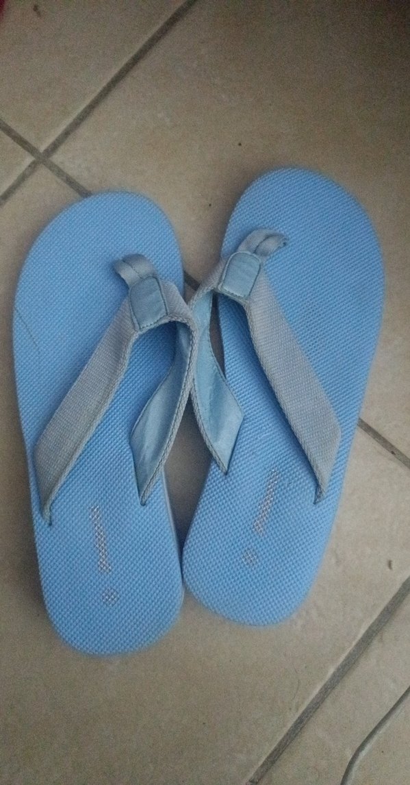 Mavi renkte, cırt cırtlı bantlı, dolgu topuklu kadın plaj terliği. Kauçuk malzemeden, sade ve minimalist tasarımda.
