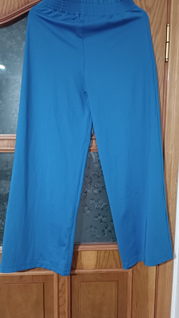 parlak mavi renkte, rahat kesim kadın kumaş pantolon. Spor ve günlük kullanım için uygundur. Sentetik kumaştan üretilmiştir.