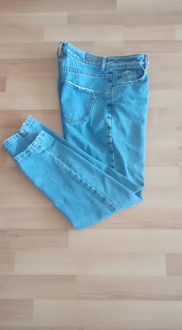 Pastel mavi renkte, rahat kesim midi boy kadın jean. Günlük kullanıma uygun, sokak stilinde rahat ve şık bir model. bel çevresi 78cm boy 90cm