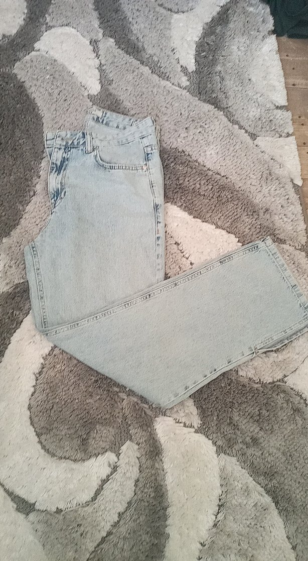 Mavi renkli, salaş kesim ve normal boyda kadın denim jean. Rahat ve şık, günlük sokak stili için ideal.