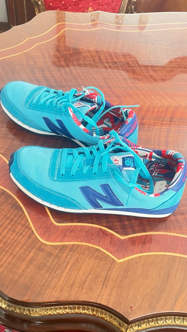 Mavi renkli kadın spor ayakkabısı, renkli bağlama deseni ve kauçuk tabanlı, sportif günlük kullanım için uygun.