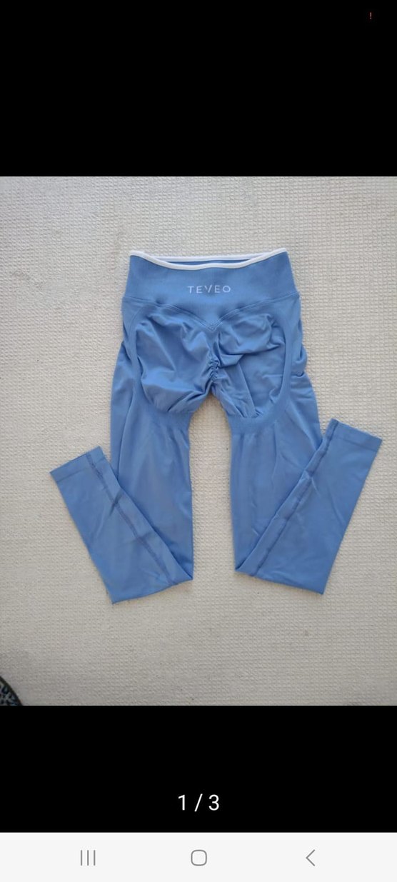 Mavi renkte, pilili detaylara sahip, normal boyda midi uzunlukta, yumuşak sentetik kumaştan yapılmış spor tayt. TEVEO logosu bulunur, sportif sokak stili için uygundur. ♀️