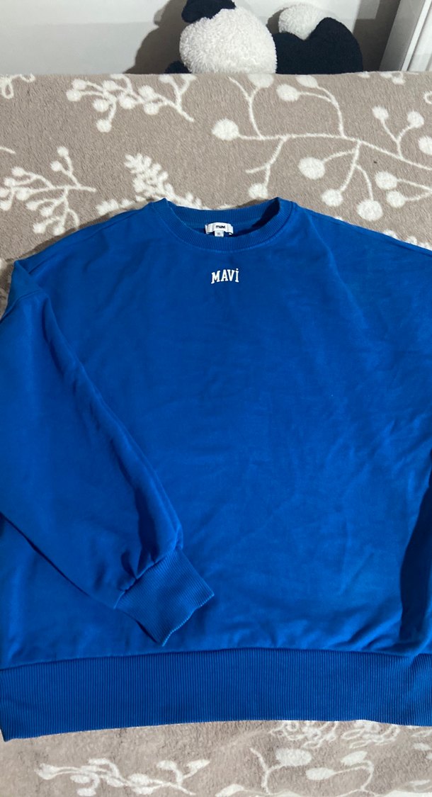 Koyu mavi, uzun kollu, yuvarlak yaka kadın sweatshirtü. Yumuşak ve sıcak kumaştan, sade ve işlemeli 'MAVi' detaylı, rahat kesim.