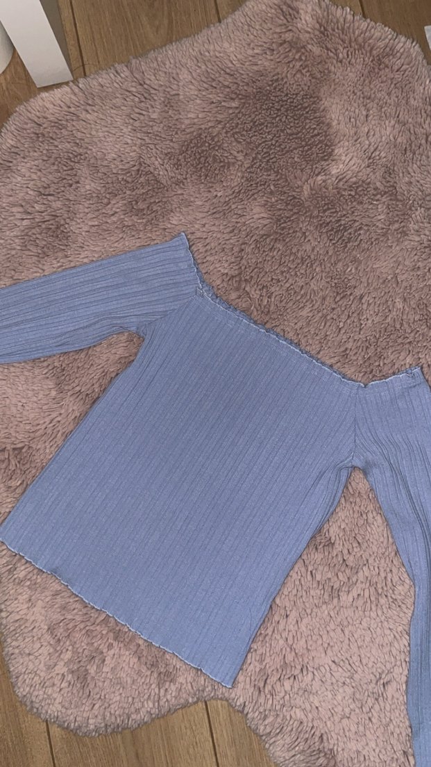 Uzun kollu, tekne yaka, mavi renkte, yumuşak triko kumaştan yapılmış, vücuda oturan kadın kazak. Rahat ve gündelik kullanıma uygun midi boy.