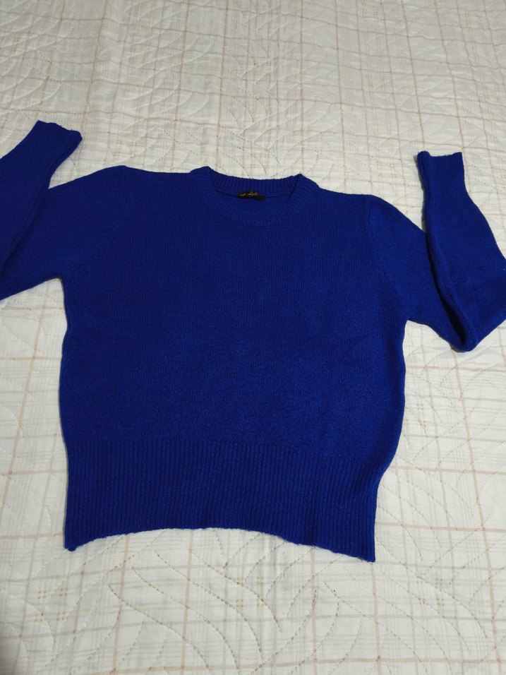 Mavi Kadın Yün Kazak, Bisiklet Yaka