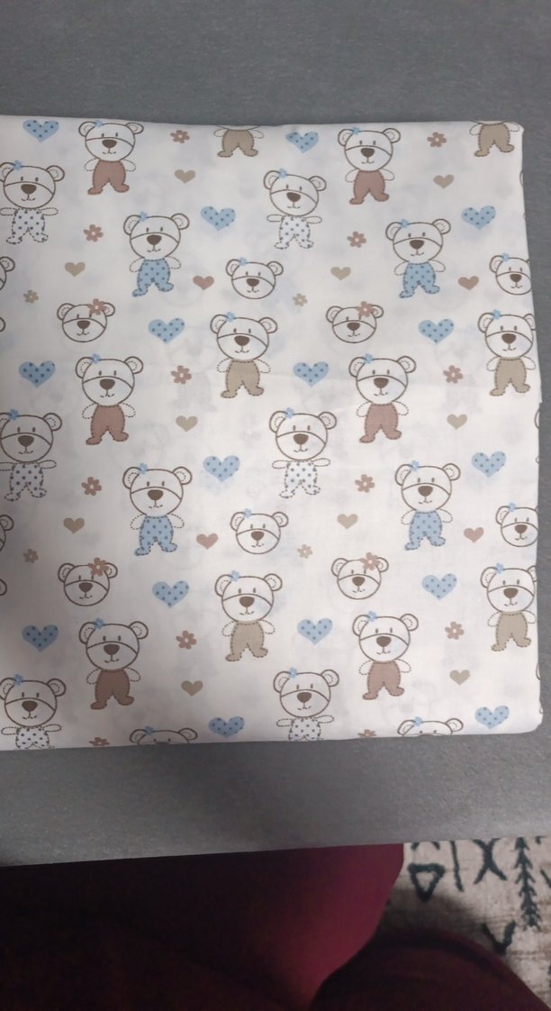 Yumuşak pamuklu kumaştan yapılmış, sevimli ayılar ve kalpler desenli mavili kahveli bebek nevresim takımı