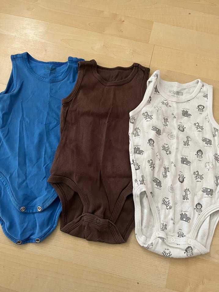 Mavi, kahverengi ve hayvan desenli beyaz olmak üzere üç adet pamuklu, kolsuz bebek atletidir. Yumuşak ve rahat kumaştan üretilmiştir.