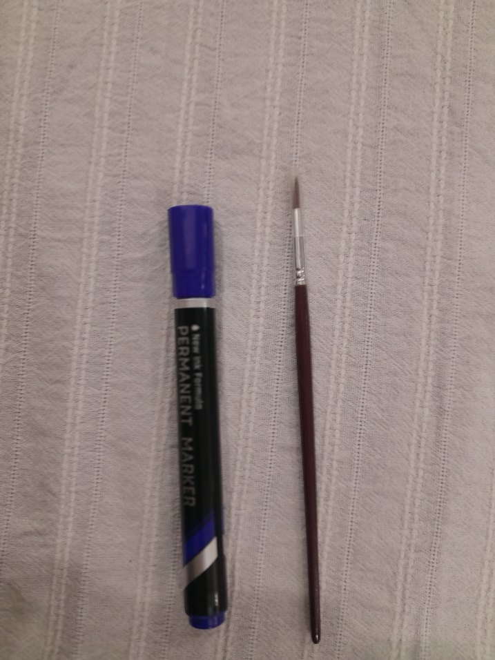 Mavi renkli kalem ve ince uçlu fırça, detaylı göz makyajı için uygundur. ️