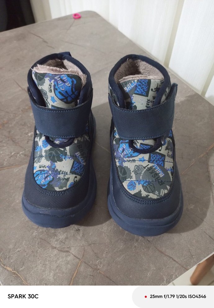 Mavi kamuflaj desenli, kauçuk tabanlı ve cırt cırtlı erkek çocuk botu. Trendy casual tarz için uygundur. 1 ay giyildi