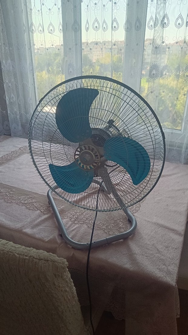 Mavi kanatlı gri masa vantilatörü