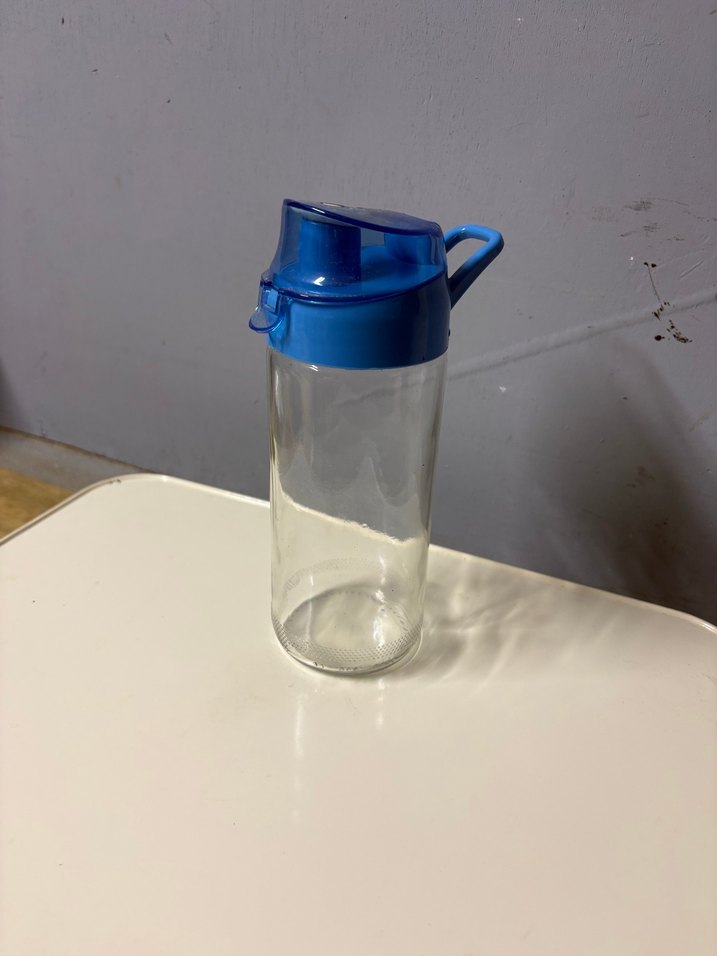 Şeffaf gövdeye sahip, mavi kapaklı ve taşıma kulplu bebek biberonu. Kolay kullanım sağlar. 19 cm