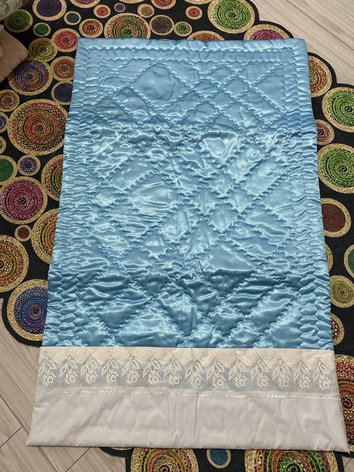 Sıfır, hiç kullanılmamış seccadedir. Mavi kapitone kumaş, alt kısmı zarif dantel detaylı. Hafif, kullanışlı ve çok şık bir model. Çeyiz fazlası olduğu için satıyorum. Temiz, kusursuz Fotoğraflar bana ait
