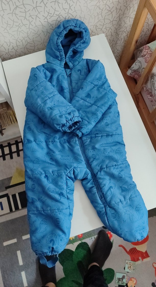 Kapüşonlu ve tokalı mavi bebek tulumu, yumuşak ve sıcak kumaştan üretilmiştir. Renkli ve sokak stili tasarıma sahiptir. ❄️