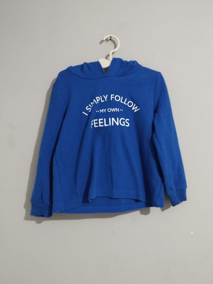 Mavi renkte, uzun kollu, bisiklet yaka erkek çocuk sweatshirtü. Renkli baskılı yazılar ve örme dokusu ile rahat kesim, yumuşak ve sıcak kumaştan üretilmiştir. lütfen alışverişinizi 100₺ ye tamamlayıp ilan actirin
