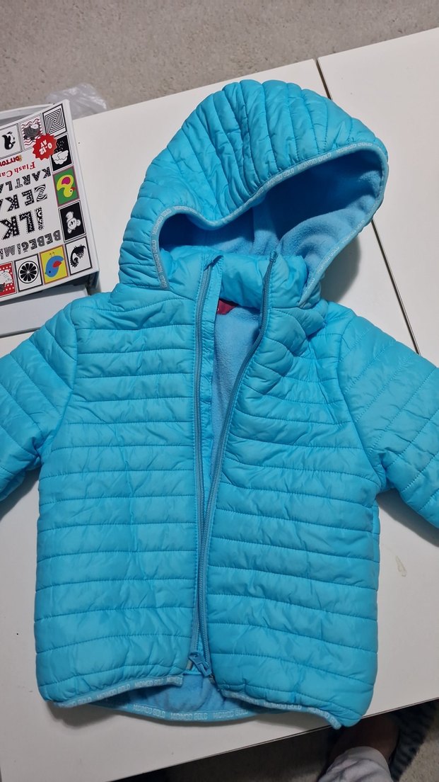 Mavi renkli, kapüşonlu ve fermuarlı erkek çocuk montu, yumuşak ve sıcak kumaştan üretilmiştir. Sokak stili için uygundur.