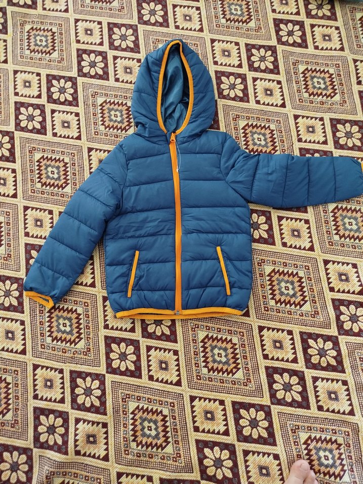 Mavi renkli, kapüşonlu ve fermuarlı cepli, yumuşak ve sıcak dokulu erkek çocuk montu. Rahat ve şık günlük kullanım için uygundur.
