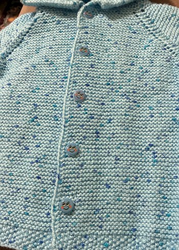 Mavi renkli, kapüşonlu ve uzun kollu erkek çocuk örgü hırka. Rahat ve bol kesim, sokak stiline uygun.ışıktan turkuaz gibi ama asıl renk mavi