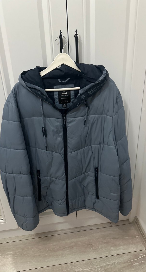Mavi erkek montu. Sırtında küçük bir izmarit defosu var fiyatı uygun yazıyorum daha da düşürmeye çalışmayın lütfen