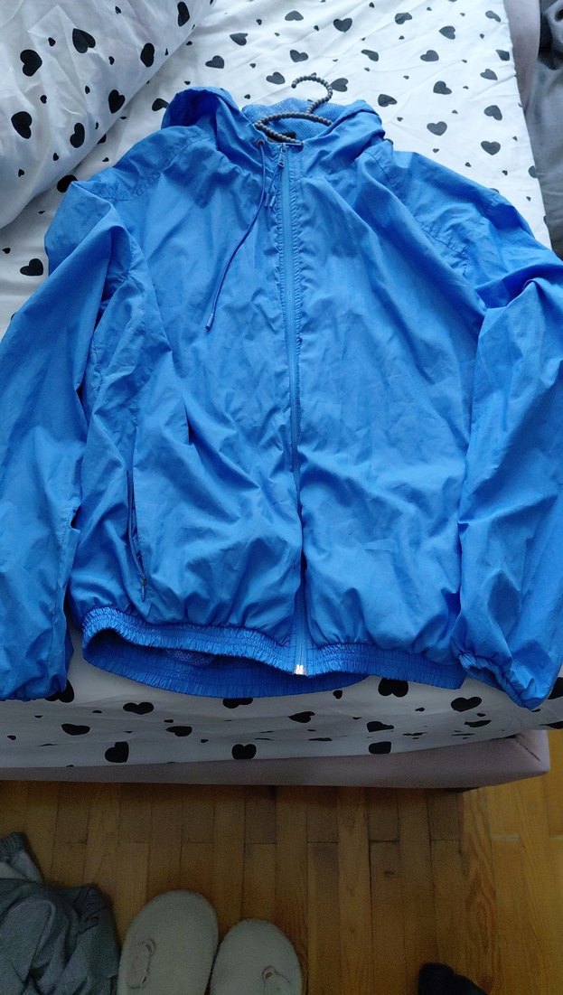 Parlak mavi renkte, kapüşonlu ve uzun kollu erkek yağmurluğu. Rahat kesim, fermuarlı ve yumuşak sıcak kumaştan, dış mekan kullanımı için uygun. ☔️