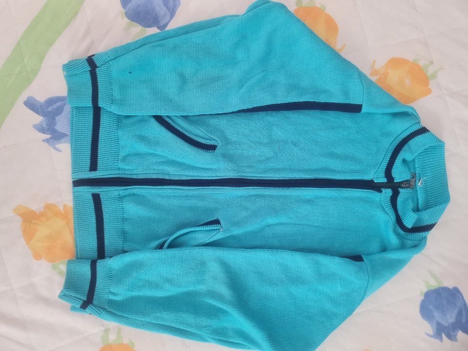 Fermuarlı ve kapüşonlu, yumuşak ve sıcak dokulu mavi renkli erkek çocuk ceketi. Düz ve desen içermeyen, sokak stiline uygun tasarım.