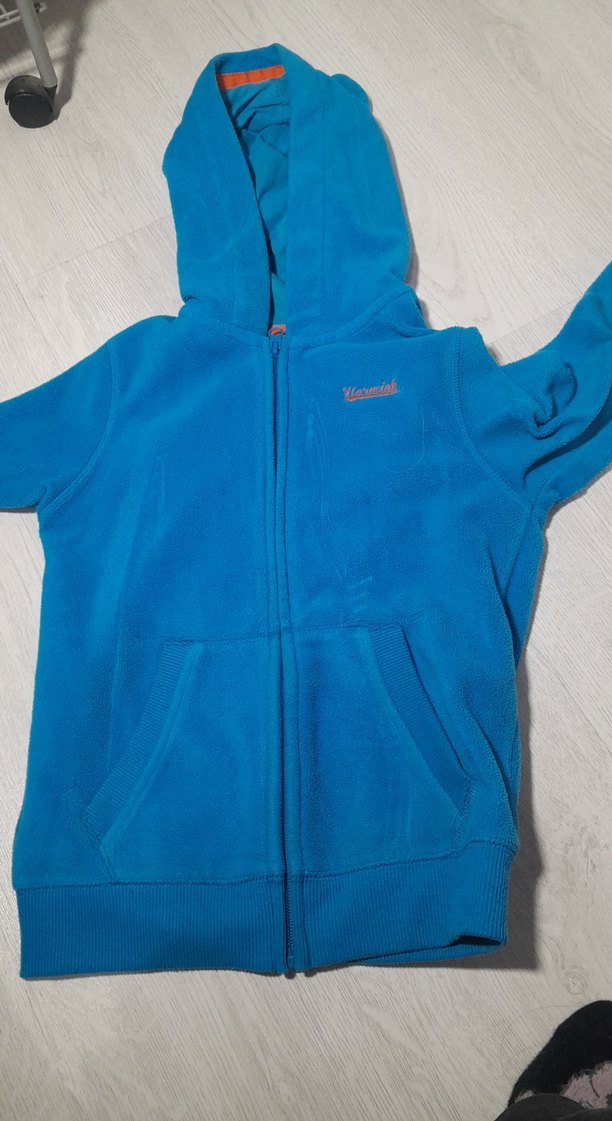 Mavi renkli, kapüşonlu ve fermuarlı erkek çocuk sweatshirtü. Uzun kollu, cep detaylı ve yumuşak, sıcak tutan kumaştan üretilmiştir. bazı kusurları bulunur