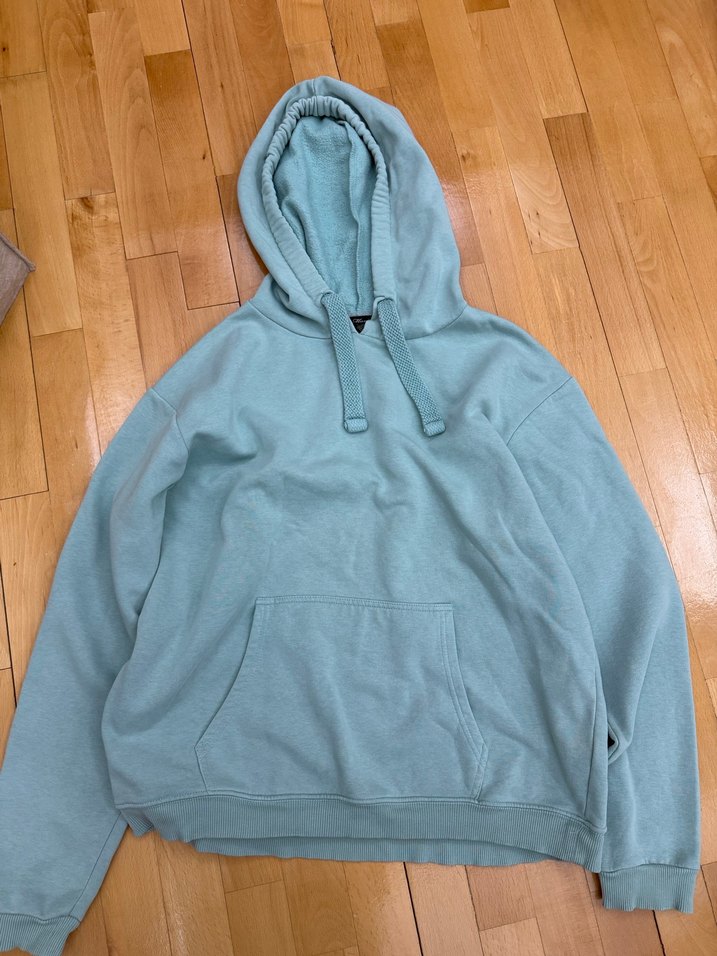 Kadın sweatshirt, kapüşonlu ve uzun kollu, yumuşak ve sıcak kumaştan, rahat kesim ve pastel mavi renkte, günlük kullanıma uygun sokak tarzı görünüm sunar.