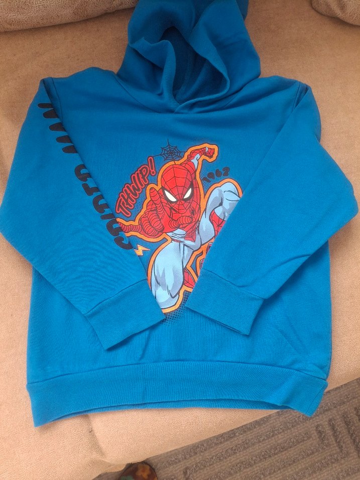 Mavi renkli, kapüşonlu ve uzun kollu erkek sweatshirtü, renkli Örümcek Adam baskısına sahiptir. Yumuşak ve sıcak kumaştan üretilmiş olup fermuar detayı bulunur. ️ürünler yepyeni sayılı giyildiği mağazadan alındı tek alım fiyatı bu ikili 500 TL