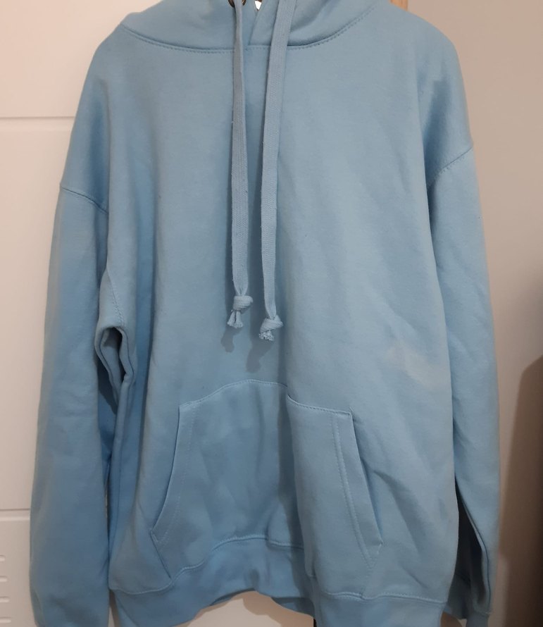 Kadın ve Erkekler için kapüşonlu, uzun kollu, yumuşak ve sıcak kumaştan yapılmış oversize sweatshirt. Pastel mavi renkte, rahat kesim ve midi boyda, günlük kullanım için uygundur. Beyaz lekesi var son fotoğrafta paylaştım.
