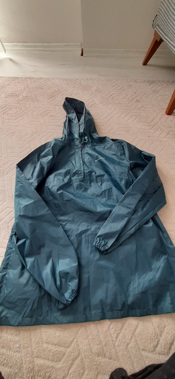 Yağmurluk yüksek yakalı ve fermuarlı ön yapıya sahiptir. Sentetik kumaştan, bol kesim ve uzun kolludur. Koyu mavi renk, sokak ve spor giyime uygundur. ️