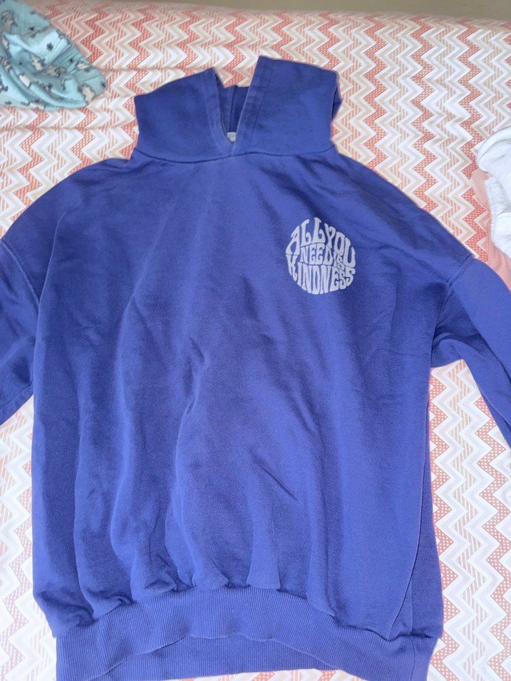 Koyu mavi renkli, kapüşonsuz, uzun kollu ve fermuarlı kadın sweatshirtü. Baskılı detaylara sahip, yumuşak ve sıcak kumaştan yapılmıştır.