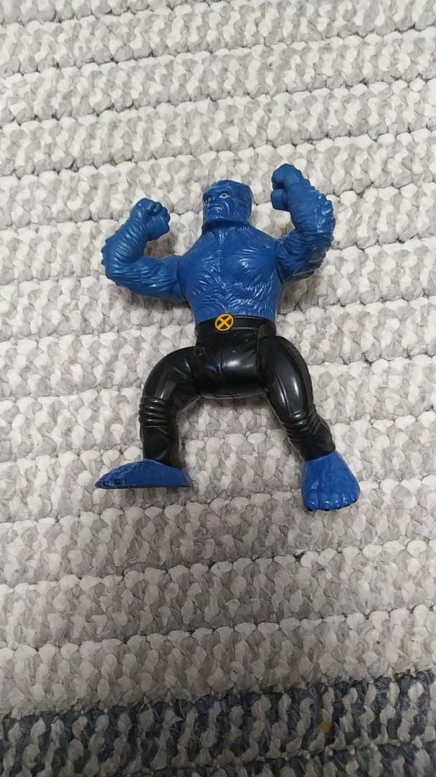 Kaslı tasarıma sahip koyu mavi aksiyon figürü, siyah pantolonlarda 'X' kemer detayı bulunur. Yumrukları sıkılı güçlü bir pozda. ♂️