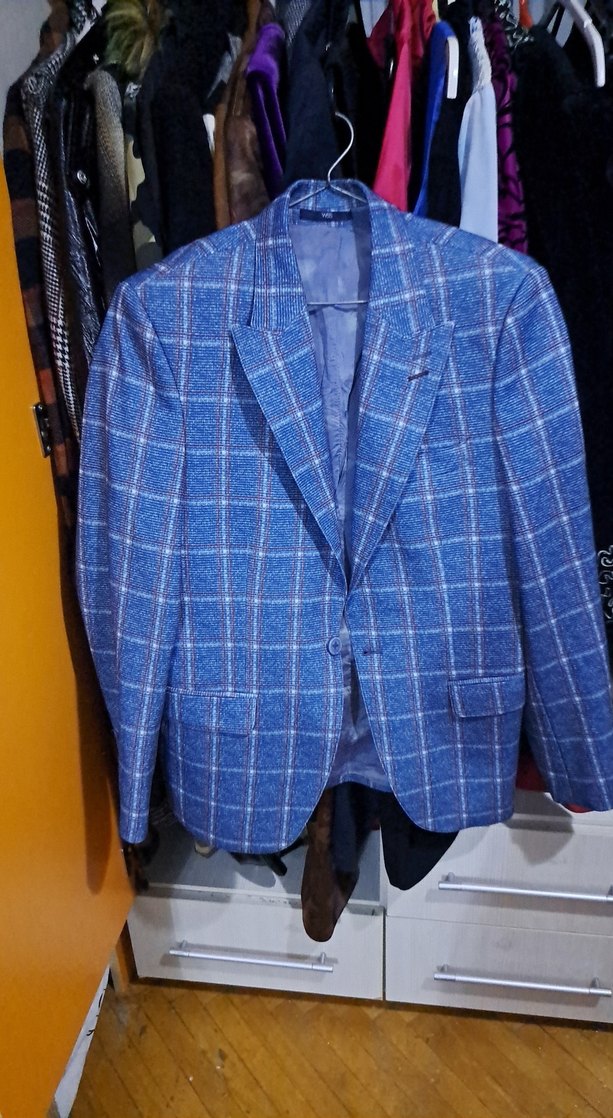 Mavi kareli, düğmeli erkek ceket, normal boyda ve regular fit. Uzun kollu, ofis ve günlük kullanım için uygun. muhteşemmm kalitede bir ceket , ister hediyelik ister kullanımlık