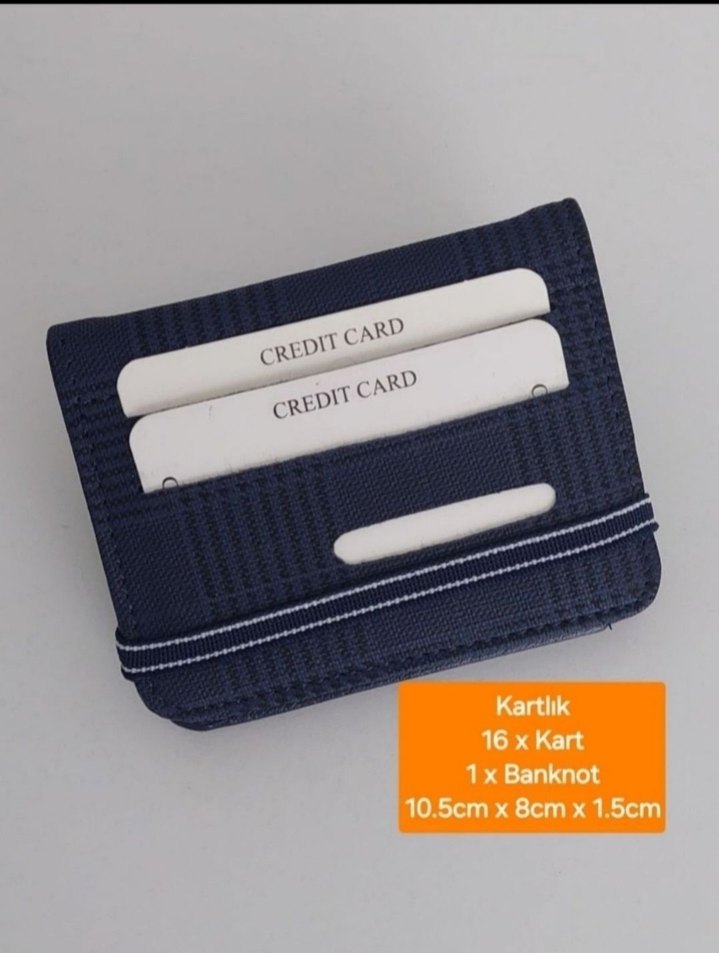 Mavi kareli erkek cüzdanı, 16 kartlık ve 1 banknot bölmeli, 10.5 x 8 x 1.5 cm ölçülerinde. Streetwear tarzına uygun.