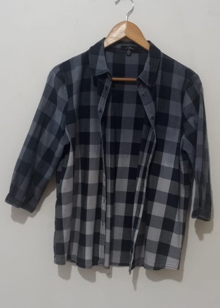 Mavi markalı, Mavi beyaz kareli, M beden az giyilmiş gömlek.