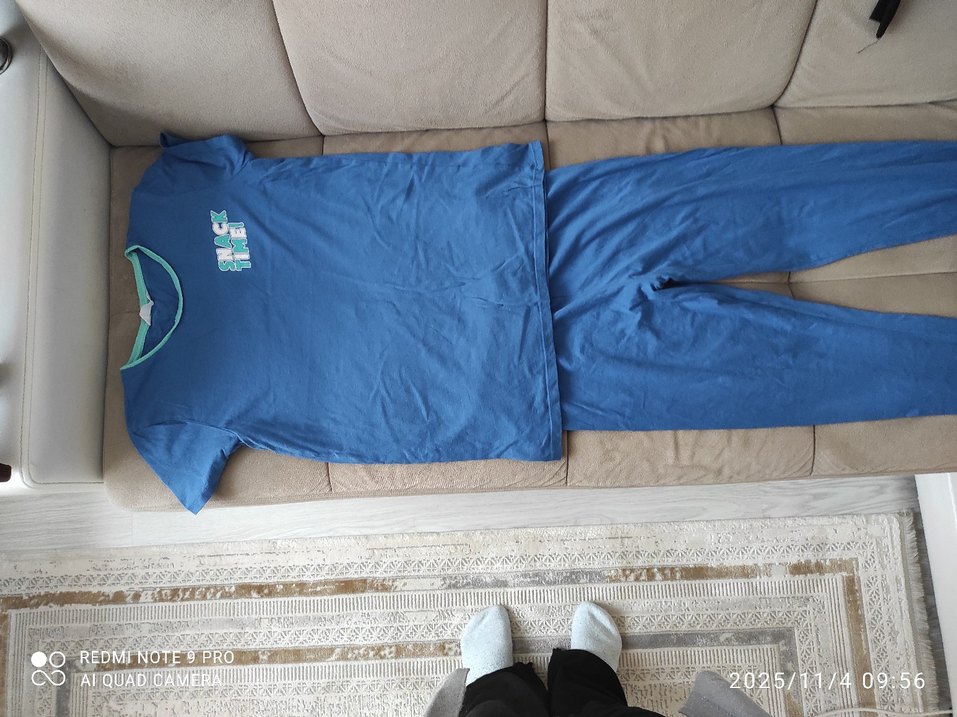 Mavi , erkek çocuk pijama takımı. Rahat ve gündelik tarzda.