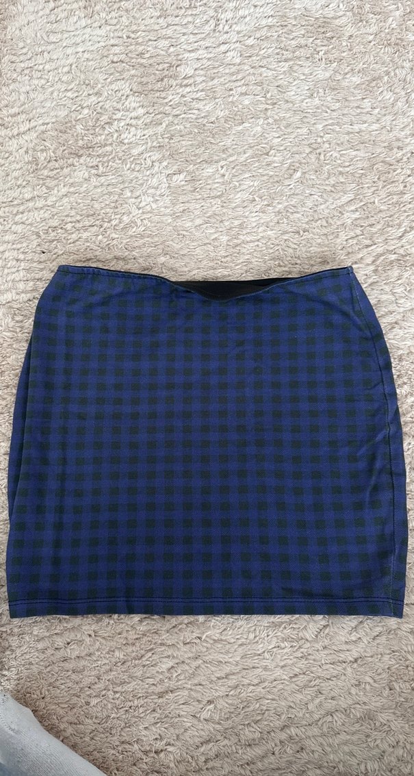 Mavi Kareli Midi Mini Etek