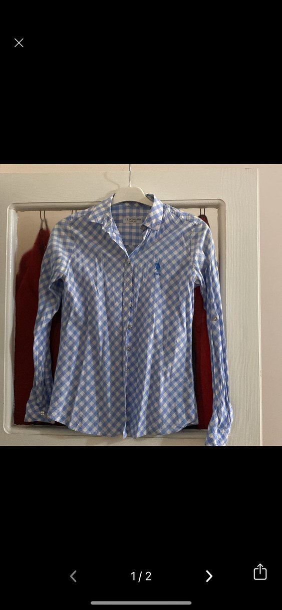Uzun kollu, düğmeli, yakalı mavi kareli pamuklu gömlek. Regular kesim ve gündelik sokak stili için uygundur.