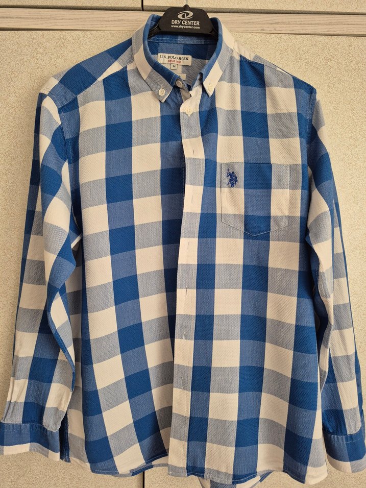 Orijinal U.S. Polo Pamuklu, uzun kollu, yakalı ve düğmeli erkek gömleği. Açık mavi kareli deseni ve regular fit kesimi ile gündelik sokak stiline uygun.