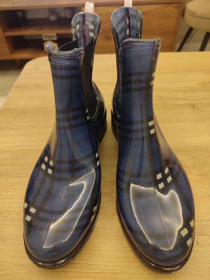 Kanadadan hediye geldi çok kısa süre kullanıldı sıfır üründen farki yoktur Parlak mavi kareli desene sahip, kadın botu. Trendy casual sokak stili için uygundur. 40 numara üründür ...
