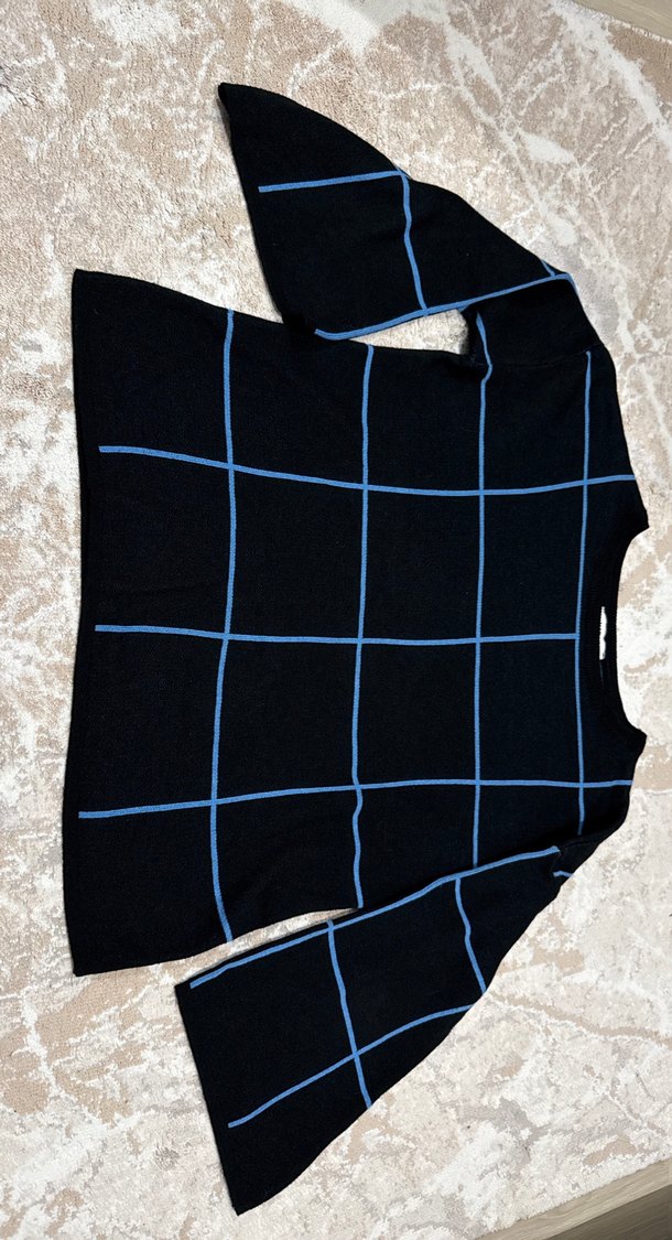 Mavi Kareli Uzun Kollu Kadın Kazak