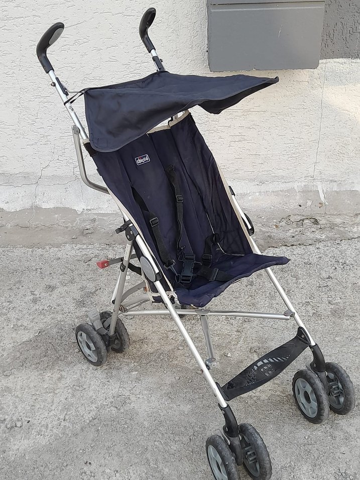 Koyu mavi renkli bebek arabası, hafif yapısı, ayarlanabilir tente ve güvenli kemer sistemiyle rahat kullanım sağlar. Döner tekerlekleri kolay manevra imkanı sunar.