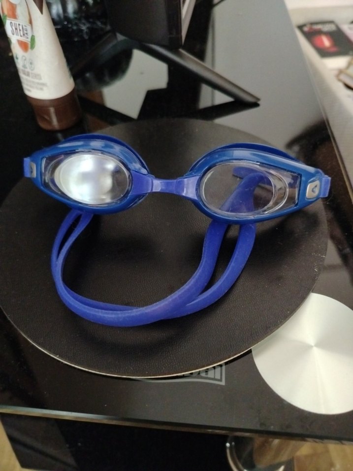 Mavi, kayışlı ve sade tasarımlı yüzücü gözlüğü. Dış mekan kullanımı için uygundur.