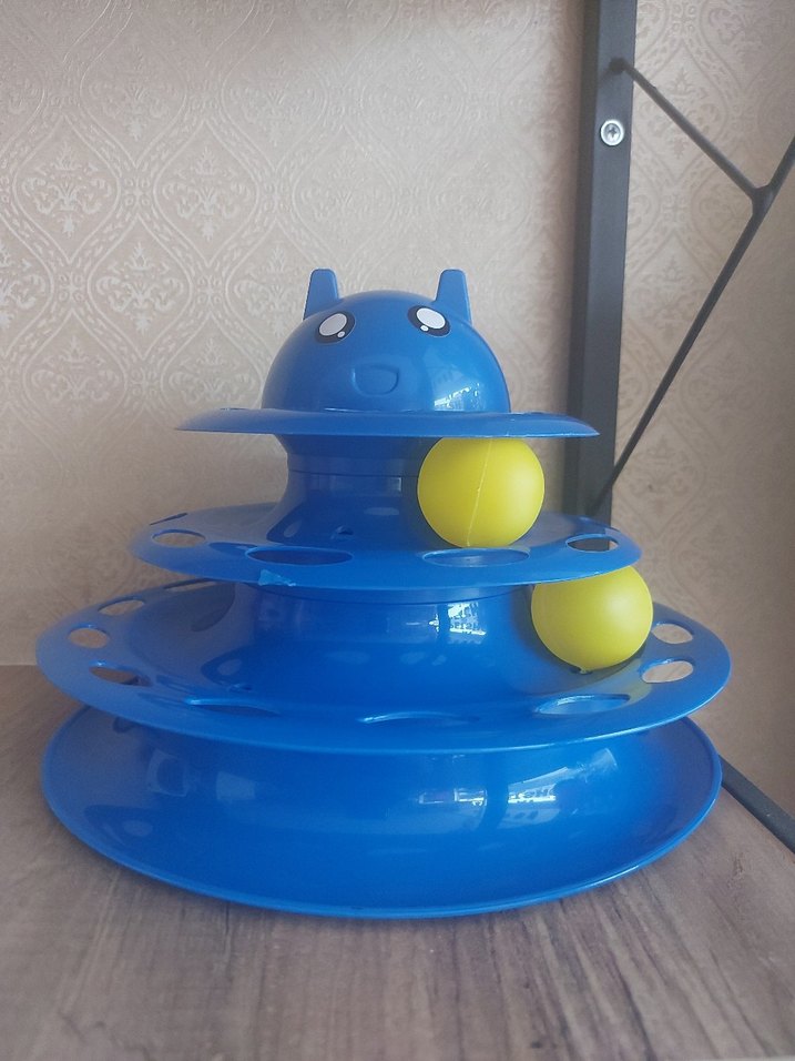 Mavi renkte, üç katlı ve sarı toplu kedi oyuncağıdır. Kedilerin oyun oynaması için tasarlanmıştır.