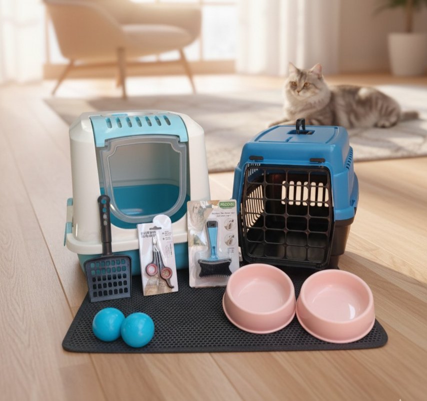 Mavi Kedi Taşıma Kabı ve Tuvalet Seti