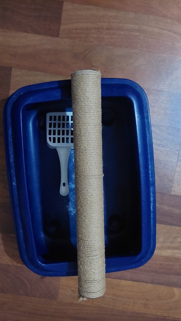 Mavi kedi tuvalet kabı, gri kürek ve tırmalama direği ile birlikte. Evcil hayvan hijyeni için uygun. ek tahta parçası hediyedir evde agaciniz varsa ona ekleyebilirsiniz. makul üründür. dolaptan daha uygun alabilirsiniz. ordaki ismim sadelesmekicin