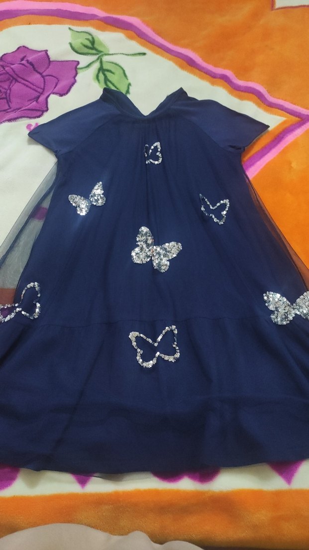 Mavi Kelebek Nakışlı Kız Elbisesi