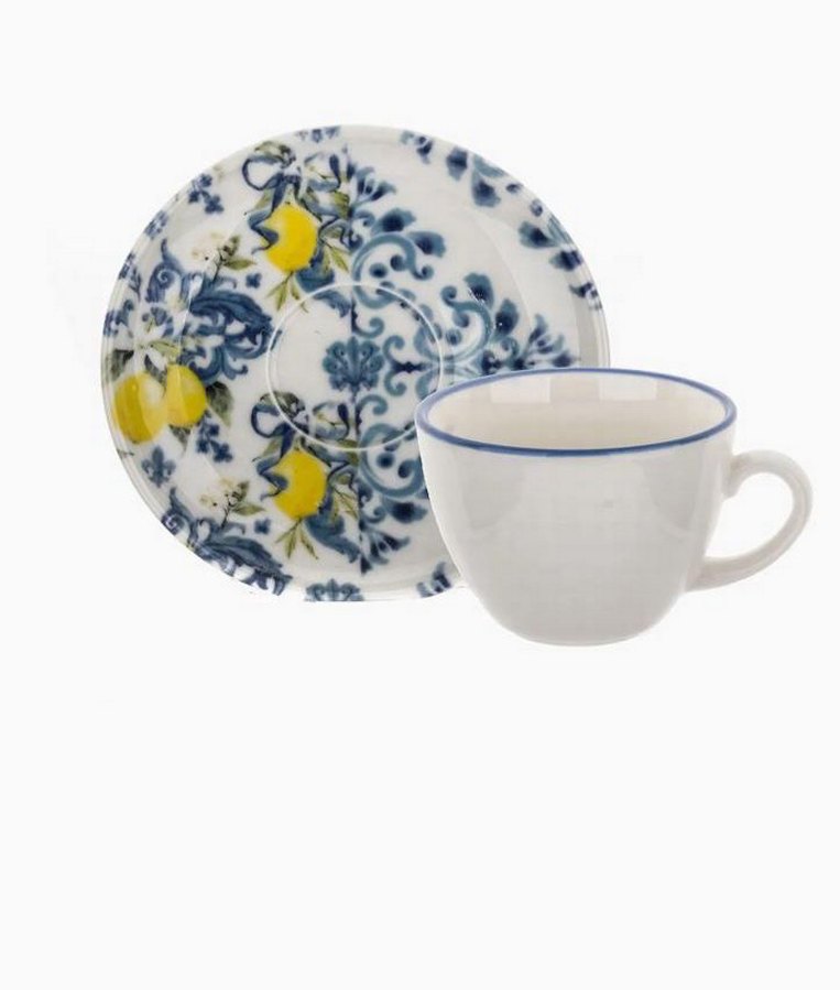 Mavi Kenarlı Fincan ve Desenli Tabak