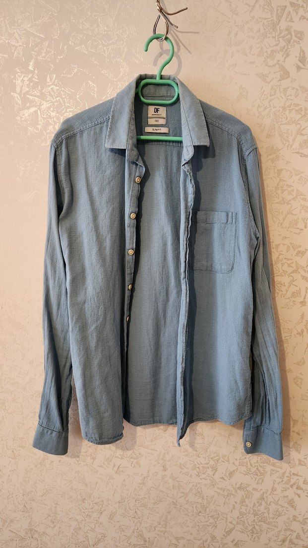mavi keten erkek gömlek, düğmeli Uzun kollu, rahat kesim olup günlük kullanıma uygundur. yakasında hafif renk değişimi dısında hiçbir kusuru yok