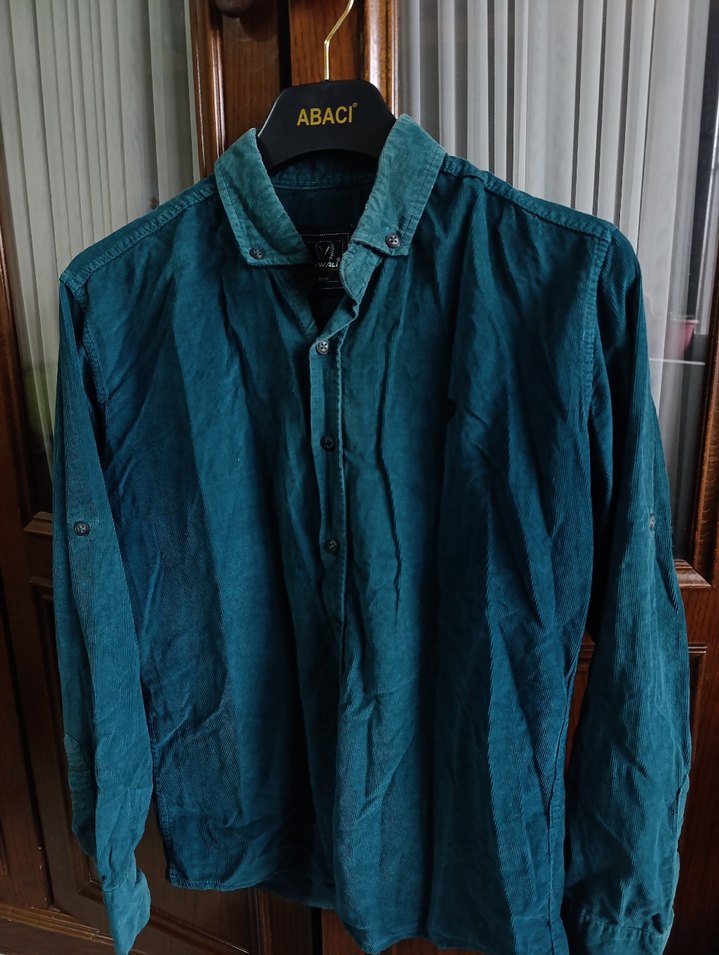 Mavi Keten Erkek Gömlek kadife