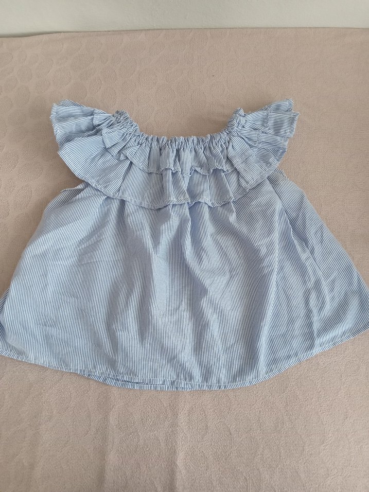 Keten kumaştan, mavi pastel renkte, fırfırlı yakalı ve kolsuz bluz. Bohem tarzda sade tasarım.Beden etiketi yok ama ölçüleri fotoğraflar da var.M ve L bedene olur.